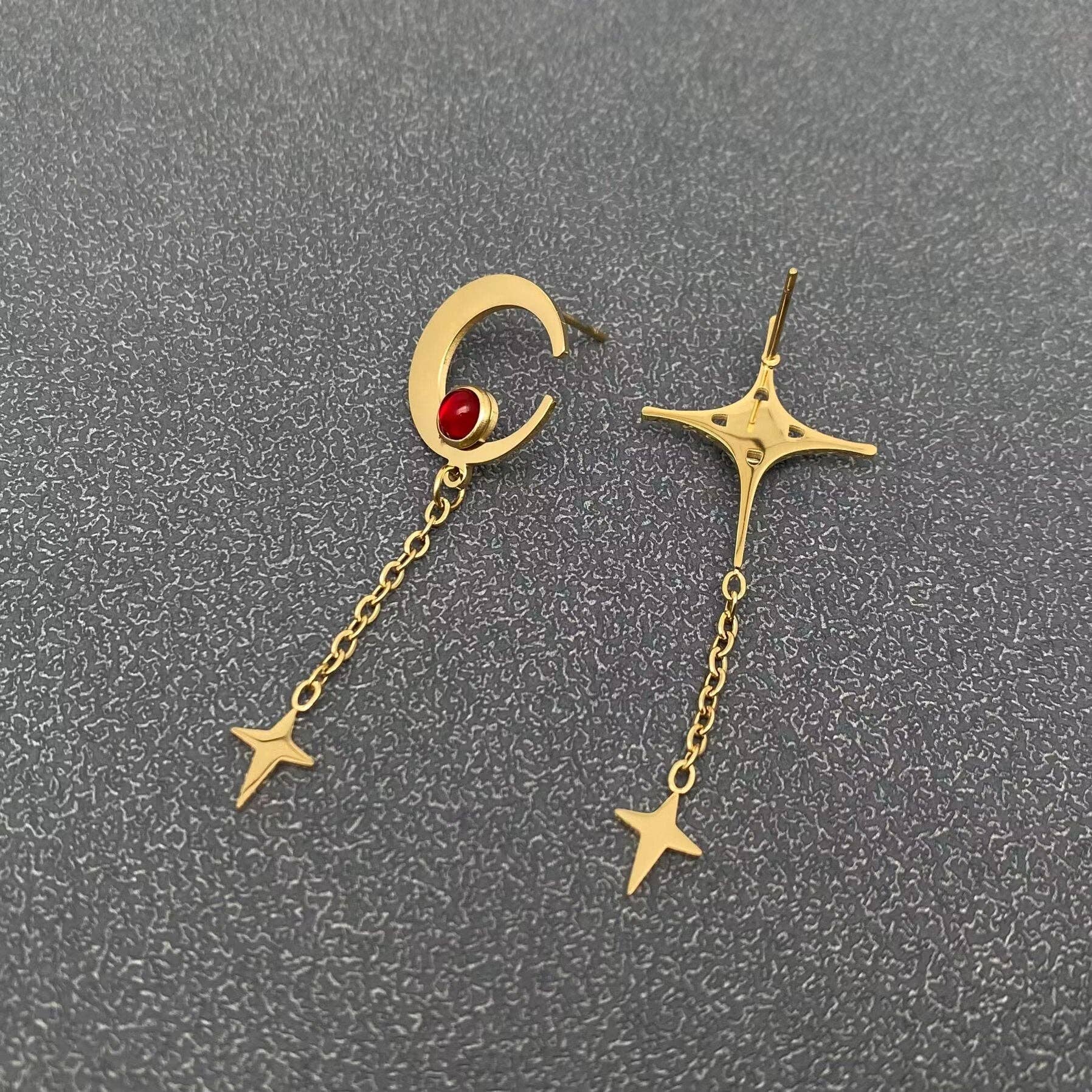 Asymmetric Celestial Star Moon Post Earrings, Gold Color