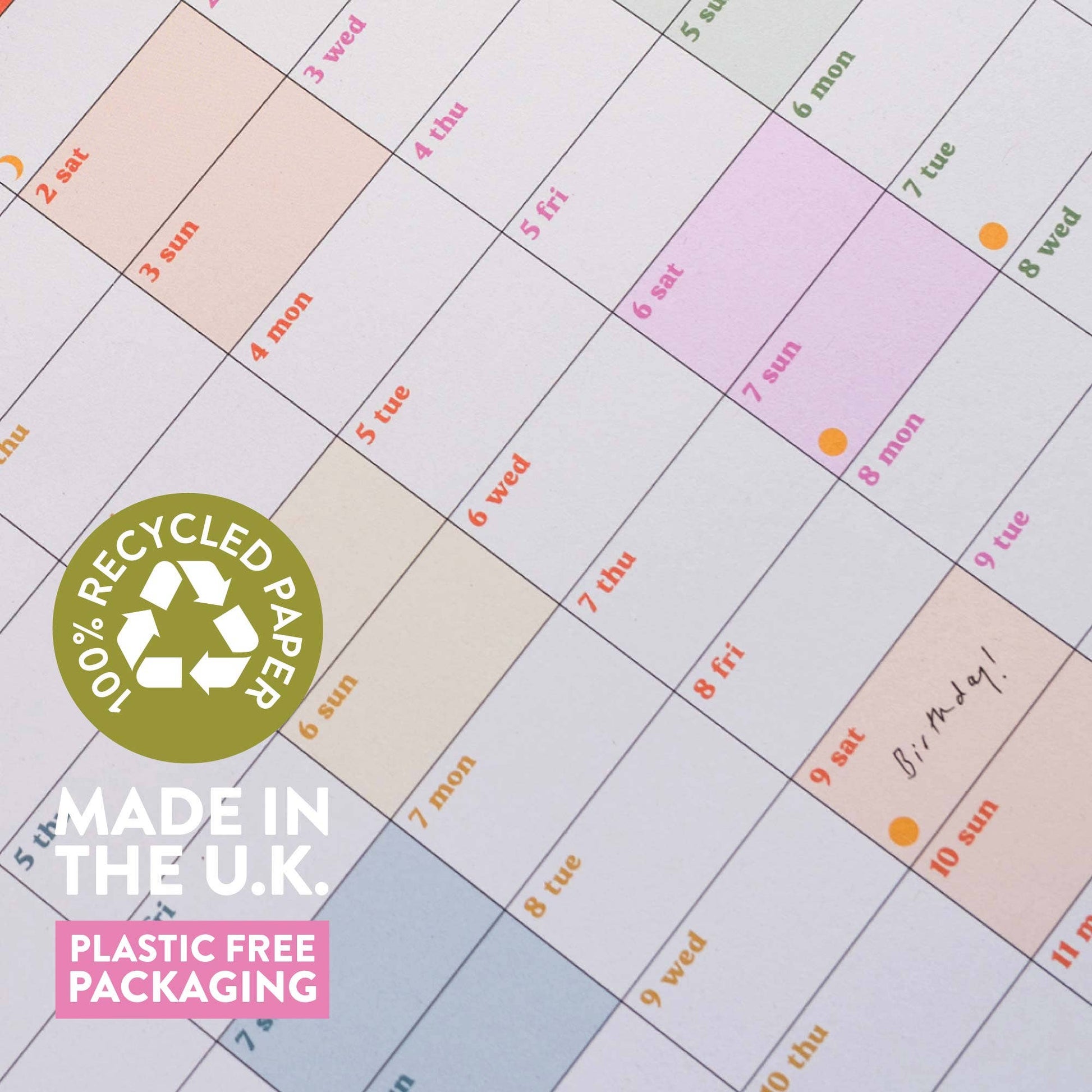 A versatile addition to your stationery collection. Designed and printed in the UK, this wall planner is a great fit for eco-conscious customers.