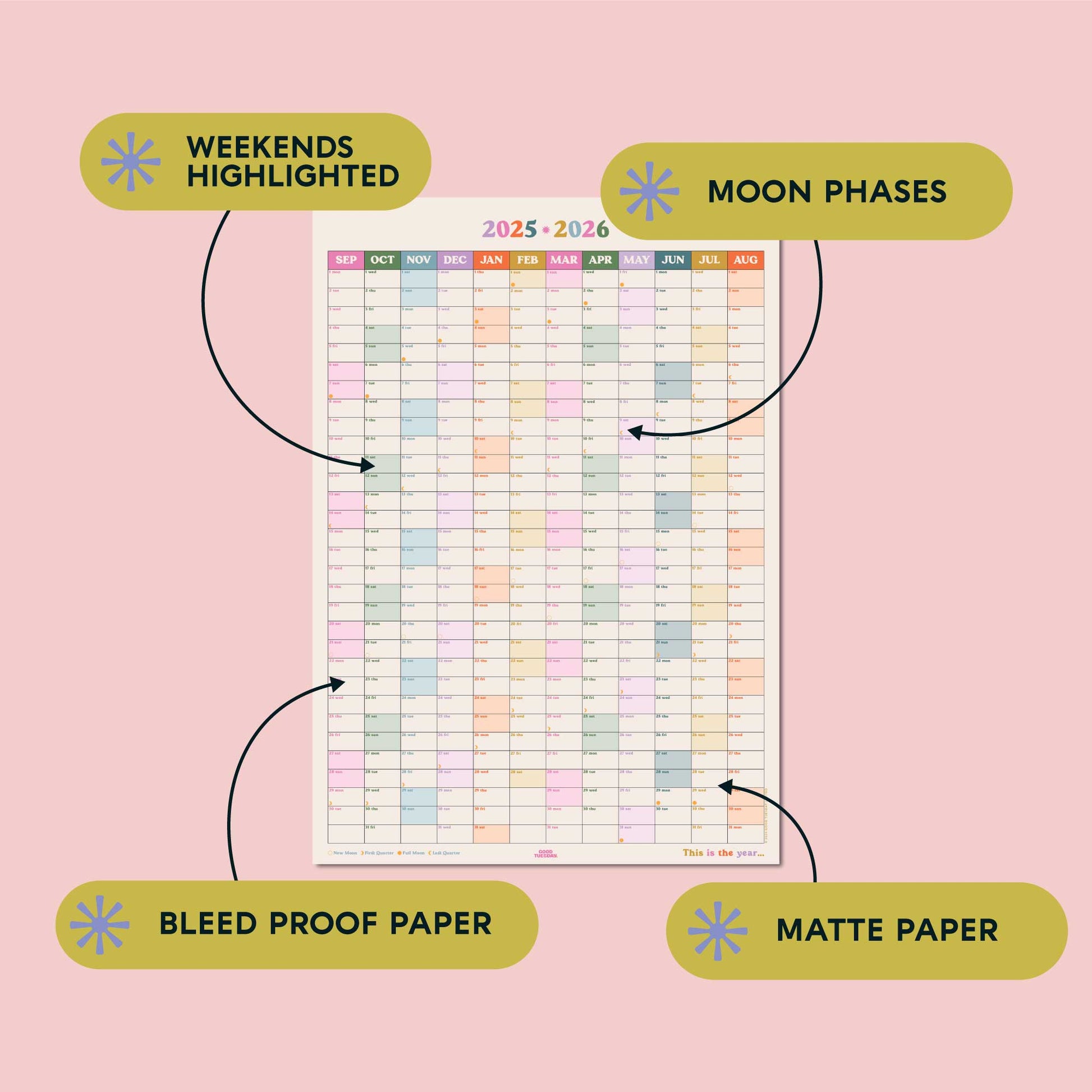 The best-selling portrait wall planner is back for the 2025-2026 Academic Year. Combining a fun, stylish colour palette - with a simple, modern feel.