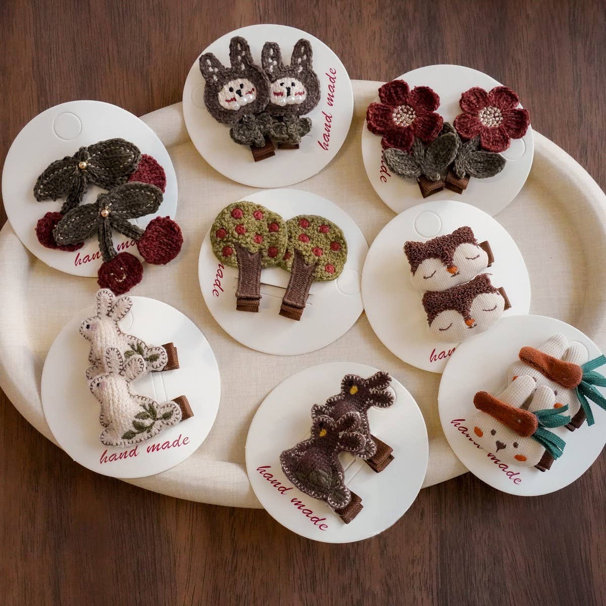 Handmade sewn and knit hair clips