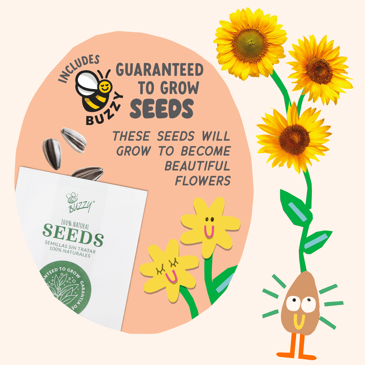 Bright Stripes Paint & Grow Go kits allow kids to use their paint brush and green thumb at the same time! A painting set and gardening activity all in one. Paint a high-quality ceramic vase shaped as a Silly Banana character. Use the included paint brush and 6 high-gloss paint colors and funny fruit stickers to decorate. Add the growing medium into the vase, pour in water and watch the soil expand like magic! Plant your real Mini Sunflower seeds! These seeds from our friends at Buzzy are guaranteed to grow. If your seeds don’t sprout for any reason, Buzzy will send you a new seed packet for free! With sunlight and diligent watering, you will see sunflowers start to grow in 7 to 14 days. Includes ceramic banana character vase (4” x “5” x 3”), growing medium pellet, pack of Mini Sunflower seeds, 6 ceramic paints, paint brush, Bright Stripes Craft Club bonus sheet of fruit stickers and growing instructions.