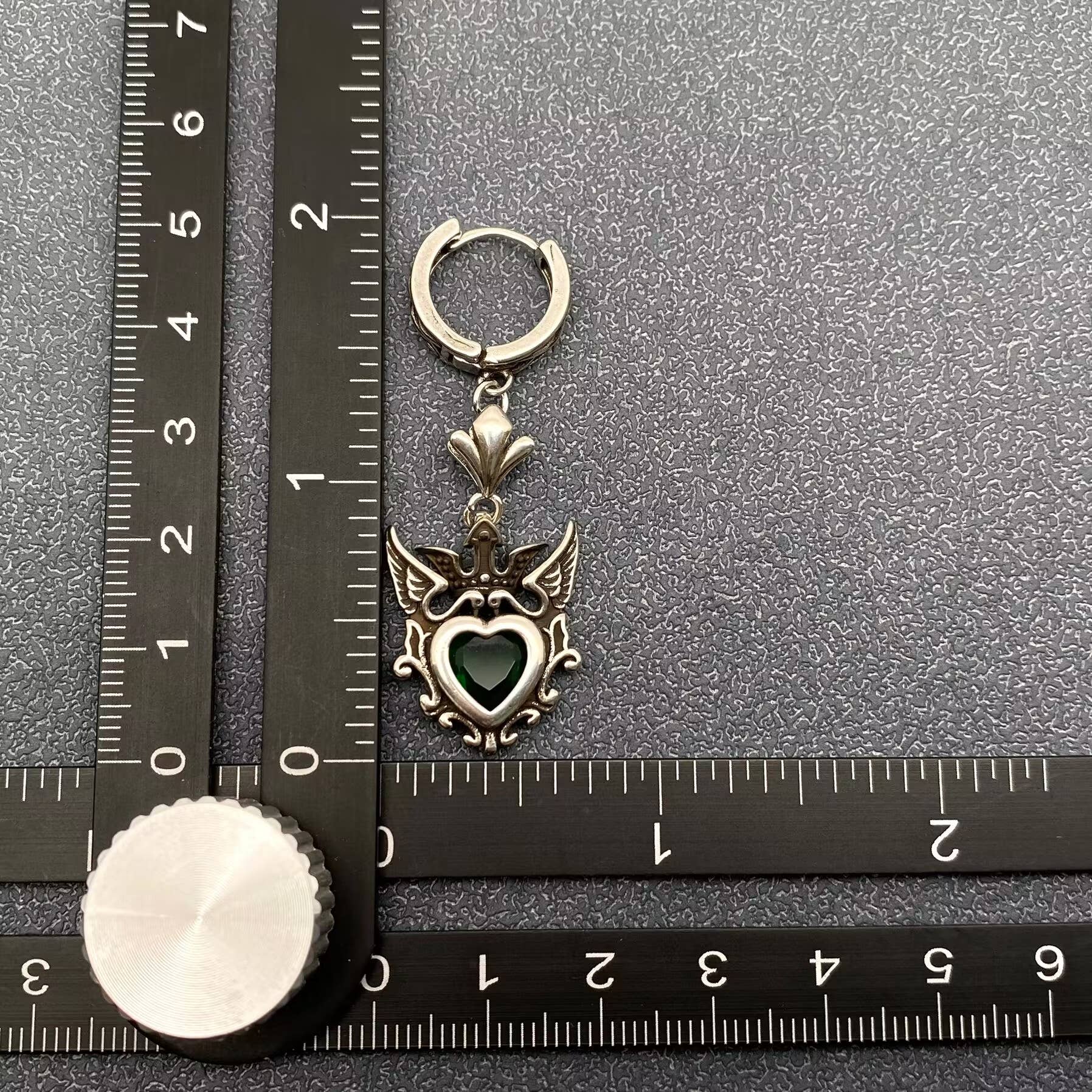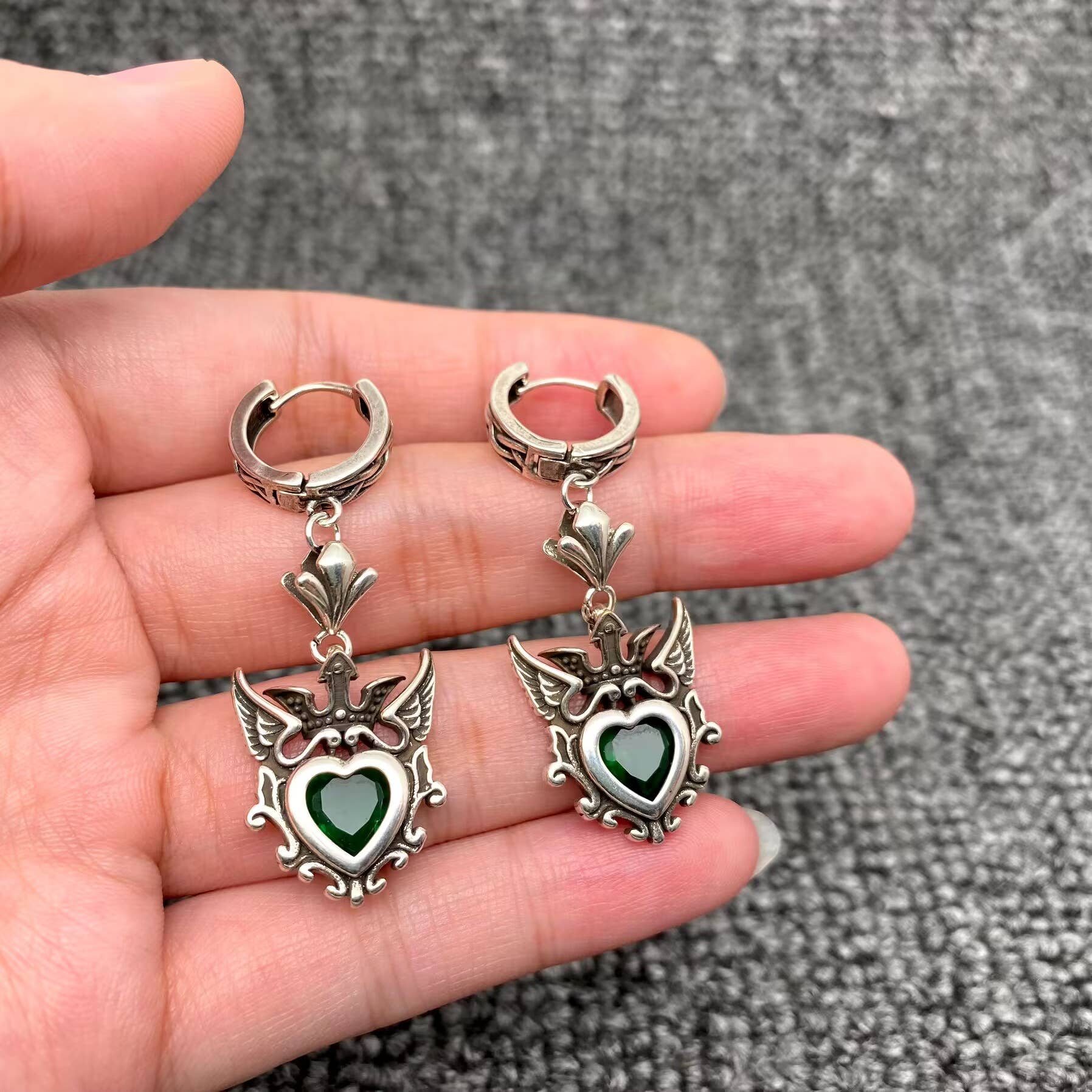 Gothic Vintage-Style Crown Heart Charm Huggie Dangle Earrings, Aged Silver Plated
